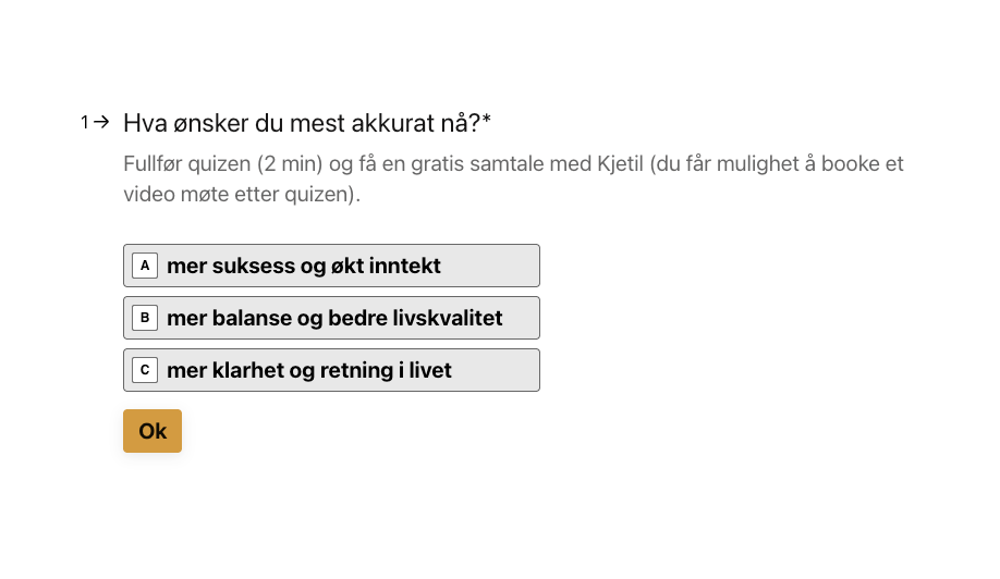 Når du har sett videoen og tatt quizen, inviterer jeg deg til en samtale med meg. Vi setter mål og lager en plan for hvordan du kan oppnå resultater og endringer du drømmer om.