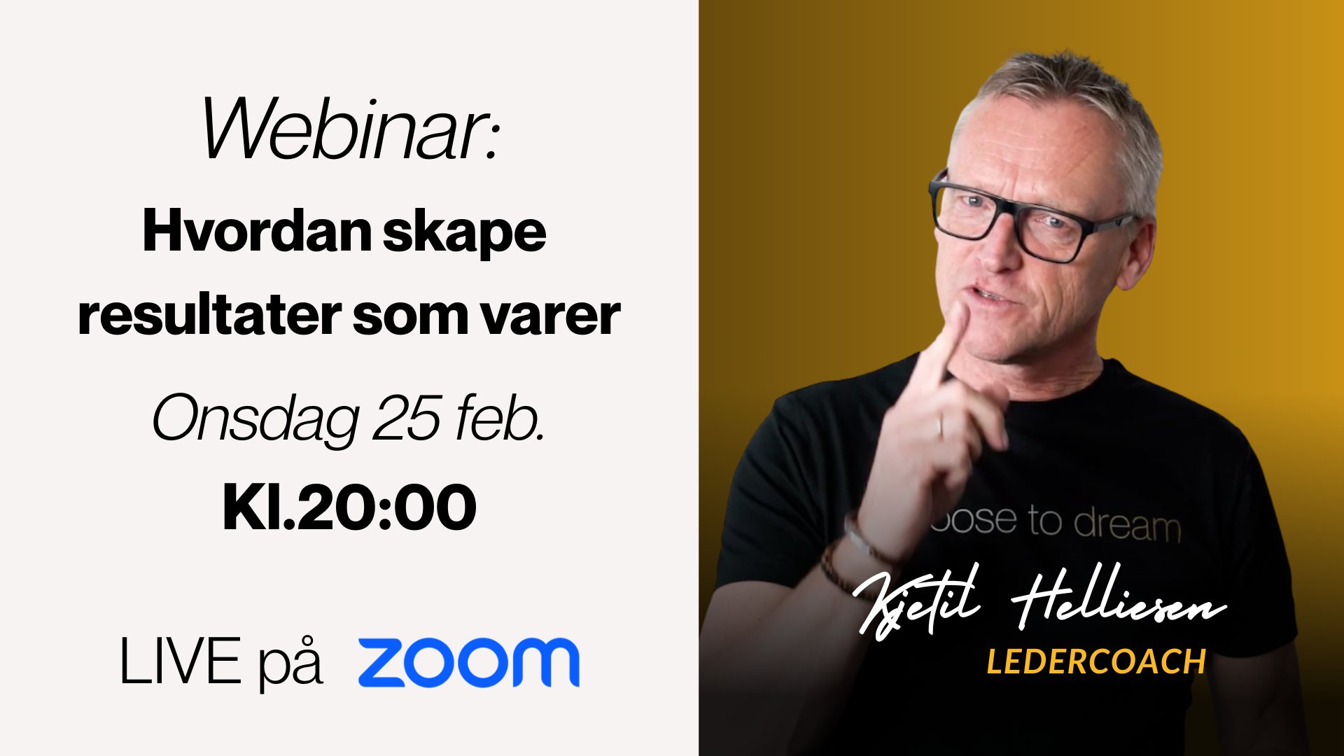 Bli med Kjetil 25. februar kl. 20:00 og lær hvordan utholdenhet og et sterkt hvorfor – skaper varige resultater i arbeid og liv.